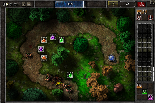 在進行遊戲時,玩家可以在右方控制面板中產生寶石(gem),然後把寶石放進畫面中的塔樓(tower)中,就可以對敵人進行攻擊。
